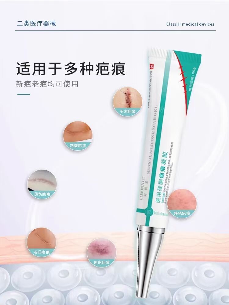 【使用方法】清洁将要涂抹的皮肤部位,保持干爽。将硅酮疤痕凝胶轻柔的涂抹在疤痕区域,只需薄薄一层即可。待1分钟薄膜干燥后,即可穿着衣物及涂抹化妆品。备注:硅酮疤痕凝胶对新生疤痕疗效更好,在伤口闭合、干燥、完整后酒能使用;建议早晚两次。