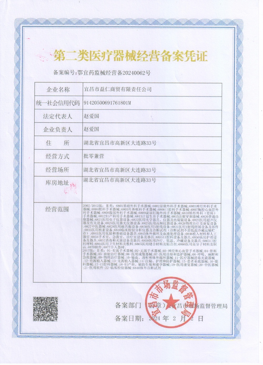益仁商贸二类医疗器械备案表